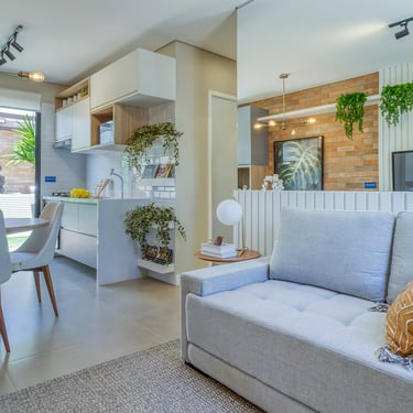 Ambientes Integrados: Sala e cozinha que convidam ao convívio, perfeitas para receber quem você ama.